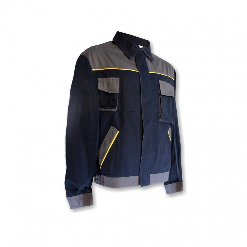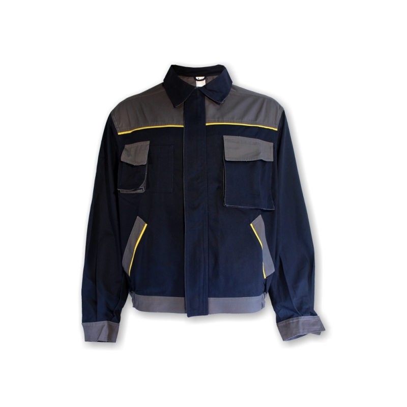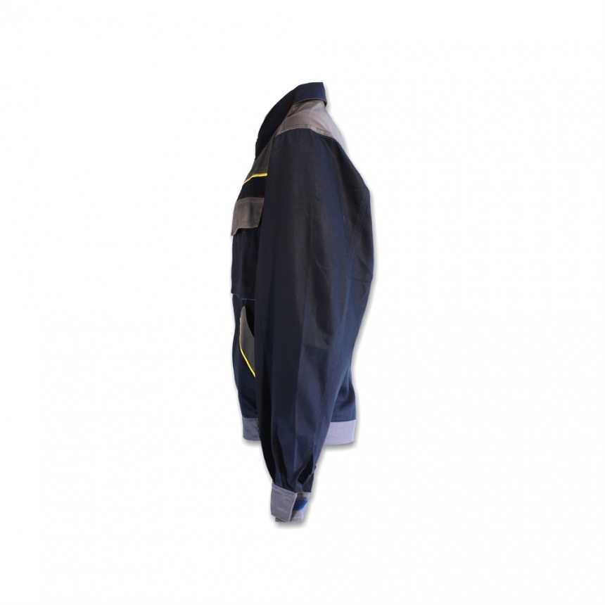Radna bluza od kepera, sastava 100% pamuk, težine 270 g/m2, sa više praktičnih džepova. Bluza je u osnovi teget boje. Grudni džepovi imaju bočne falte, zbog dodatnog komfora.