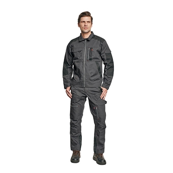 Radna bluza modernog dizajna, antracit - tamno sive boje, sa praktičnim multifunkcionalnim džepovima, proizvedena od materijala 65% poliester 35% pamuk, težine 320 g/m2, sa ojačanjima od Oxfford poliestera na mestima izloženim većem habanju (ramena,laktovi i sl). Leđa bluze su od elastičnog materijala koji je kombinacija 88% najlona, 12% elastina, težine 300 g/m2. Stara šifra: OD-OS2010 Deklaracija