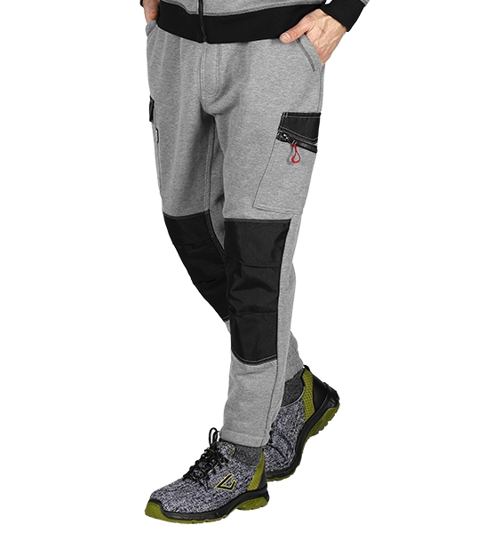 Radni donji deo trenerke, modernog i udobnog kroja, od kvalitetne roko futer pletenine sastava 50% pamuk 50% poliester, težine 320 g/m2. Kolena imaju 900D Oxford ojačanja čime se povećava otpornost na habanje. Pojas sa učkurom, dva džepa ispod pojasa, dva džepa na nogavicama bočno i dva džepa pozadi. Tabela veličina*: