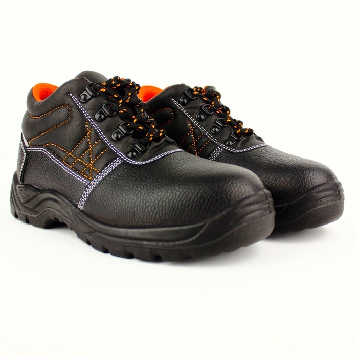 Duboke zaštitne cipele cipele, crna goveđa crna koža sa postavljenim jezikom za bolju udobnost i zaštitu. Cipele imaju čeličnu kapu i neprobojan čelični list u đonu. Netkanina postava, đon PU dvostruke gustine, protivklizan na keramici i metalu, otporan na ugljovodonike. Reflektujući detalji u petnom delu radi bolje uočljivosti. Standard i nivo zaštite: SRPS EN ISO 20345 S1P SRC Deklaracija