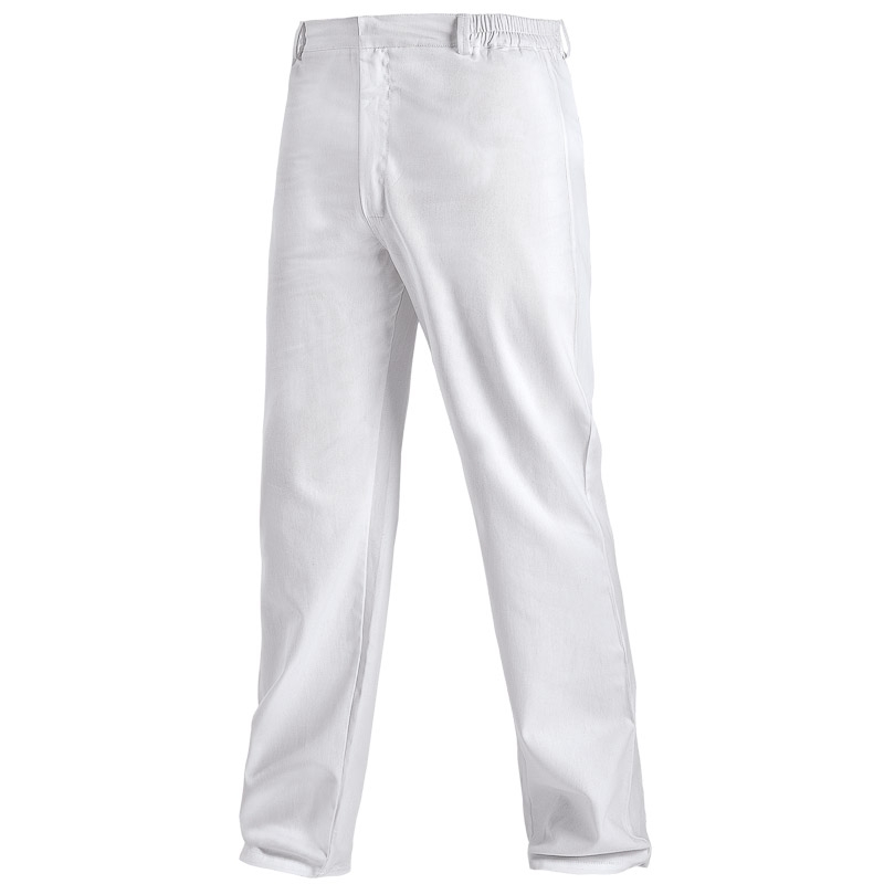 Pantalone HACCP M keper bele - lastih u pojasu, gajke. Kopčanje drikerom, 100% pamuk, 235g. Deklaracija