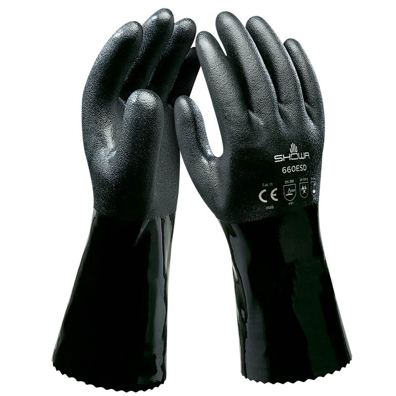 Rukavice močene u PVC sa nitrilom. Imaju pamučnau osnovu, i pružaju zaštitu od mehaničkih i hemijskih rizika. Otporne su na kiseline i baze, i imaju specijalni protivklizni posip na dlanu, što ih čini dobrim mehaničkim rukavicama otpornim na abraziju. Pogodne za industrijsku upotrebu za rad sa kiselinama i bazama. Spadaju u ličnu zaštitnu opremu kategorije III. Dostupne u dve dužine - 35 cm i 65 cm (koje imaju PVC rukav). EN 388 4121 EN 374 AKL