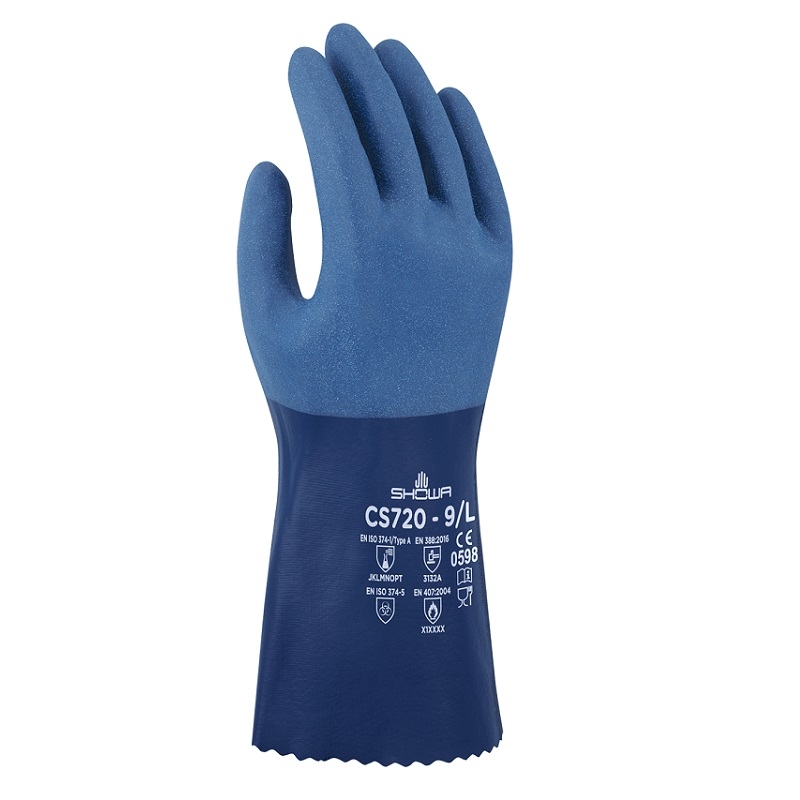 Hemijske rukavice sa osnovom od kombinacije poliestera i najlona, celomočene u nitril, sa dodatnim slojem peskiranog nitrila na celoj šaci, koji ih čini otpornim na abraziju, i omogućava dobar stisak i preciznost u radu. Debljina je 1.1 mm. Imaju antibakterijski, i tretman protiv pojave neprijatnih mirisa. Bešavna osnova dodatno doprinisi komforu rukavica. Takođe, imaju i dodatni tretman za zaštitu od jedinjenja na bazi ugljovodonika. Nepropusne su, i pružaju zaštitu i od masti i ulja. Duža manžetna (ukupna dužina rukavice min. 30 cm) pruža zaštitu podlaktice. Lagane su, elastične, ne linjaju se i ne deformišu vremenom. Primenjuju se u građevinskoj industriji, hemijskoj i petrohemijskoj industriji i sl. Standardi: EN 388:2016 3132A Deklaracija