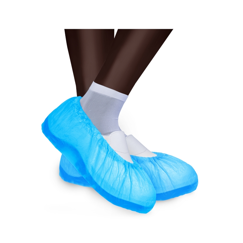 Jednokratne navlake od CPE polietilena, debljine 30 mikrona, dimenzije 40 x 14 cm, elastična traka po obimu. Jedinica mere je pakovanje od 100 kom.