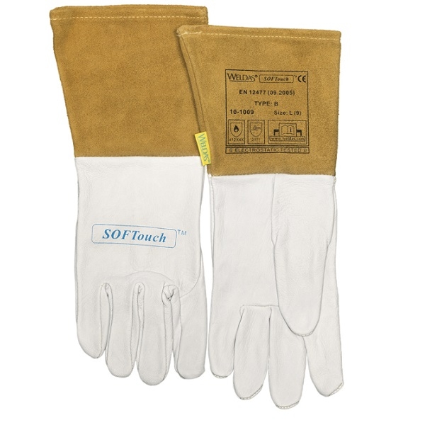 Varilačke rukavice od mekane SOFTouch™ kozije kože i manžetnom od goveđeg špalta, za precizno TIG zavarivanje. Dužina 35 cm. Stara šifra: 10-1009 Deklaracija