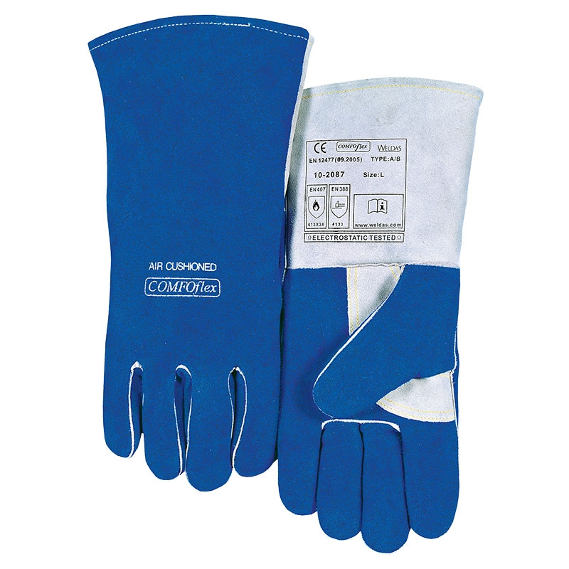 Rukavice za zavarivanje Weldas 10-2087, proizvedene od prvoklasne goveđe kože. Comfoflex® postava na ruci. Elektrostatički testirane. Pamučna postava na manžetni. Široki model, dužine 35 cm. Sertifikat za zavarivanje tip A/B. Veličina L, XL Stara šifra : R-K10-2087 |