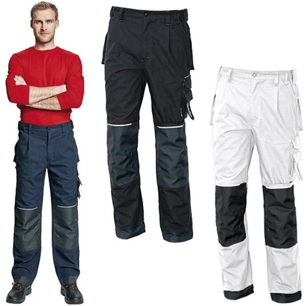 Radne pantalone sa mnoštvom praktičnih džepova, izrađene od veoma jake tkanine, 65% poliester, 35% pamuk, 320 g/m2. Na kolenima ojačanja od 600D Ofxord poliester/PU sa džepom za umetanje štitnika za kolena. Reflektujući detalji i ušivene omče za kačenje alata. Deklaracija