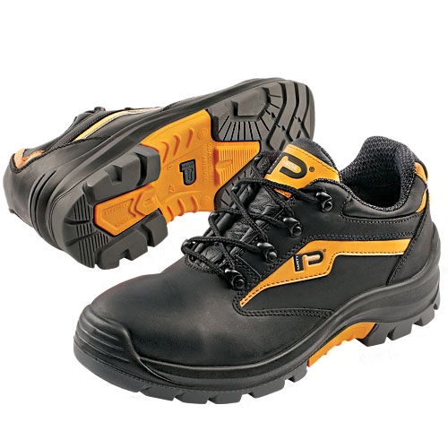 Profesionalne plitke zaštitne cipelevrhunskog kvaliteta sa kompozitnom kapom, izrađene od pune goveđe kože tretirane voskom radi veće vodoodbojnosti, Yuma mikrofiber postava, neprobojni, nemetalnilist, peskirani antistatik i protivklizni PU/TPU đon otporan na kiseline i ulja sa ojačanjima u predelu prstiju i pete, otporan na torziju i abraziju, apsorber energije u oblasti pete, ispunjen deo oko članka radi veće udobnosti.