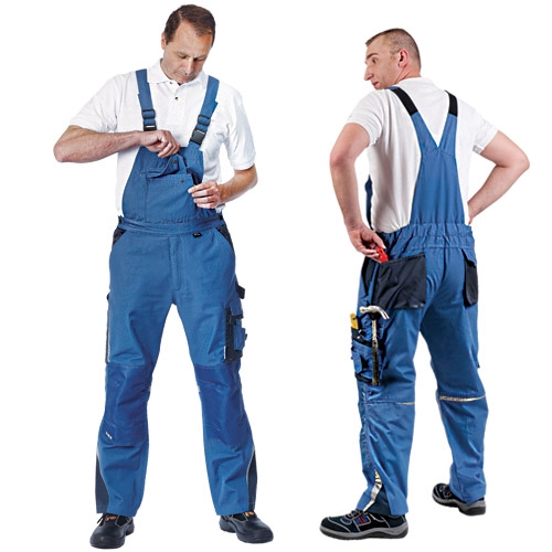Praktičan, veoma izdržljiv polukombinezon od 65% poliestera, 35% pamuka, 280 g/m2, sa ojačanjima od DuPont Cordura 600D poliestera na mestima izloženim većem habanju, 3M reflekivni detalji, kopčanje metalnim zipom i drikerima, poseduje džepove za umetanje štitnika za koleno. Boja - plava. Stara šifra: OD-920-x Deklaracija