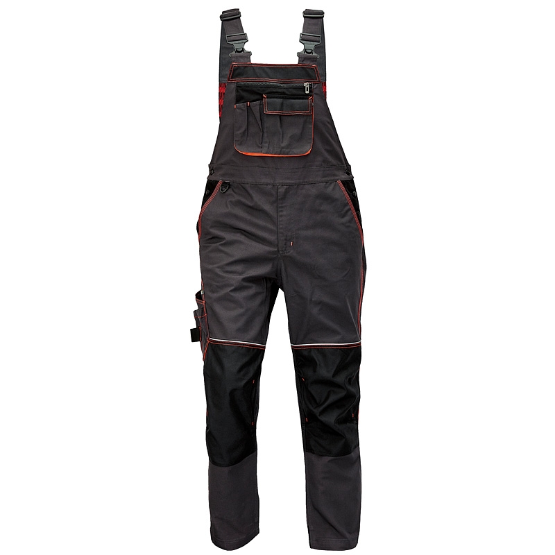 Polukombinezon od visokokvalitetne tkanine 35% pamuka i 65% poliestera, težine 275 g/m2 sa Oxford 600D ojačanjima na mestima izloženim većem habanju. Veliki broj multifunkcionalnih džepova i dodataka: 2 bočna džepa, 1 džep na nogavici, 1 džep na grudima, D-kopča za ID karticu, 2 zadnja džepa, mogućnost umetanja penastih štitnika za kolena, nogavice je moguće produžiti za 5 cm. Boja: tamno siva sa crnim ojačanjima i kontrast štepovima u fluo crvenoj boji. Stara šifra: OD-9922 Deklaracija