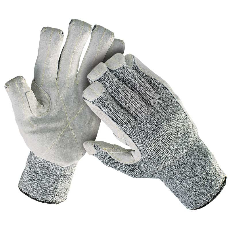 Rukavice od specijalne pletenine (modifikovana staklena vlakna, spendex i najlon), bez šavova, sa ojačanjem od goveđeg špalta svetlo sive boje na dlanu i prstima i dodatno ojačane kožom između palca i kažiprsa i sa prekrivenim vrhovima prstiju.