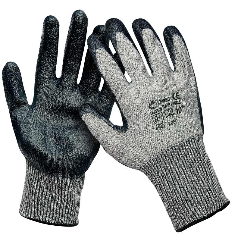 Rukavice od specijalne pletenine (modifikovana staklena vlakna, spendex i najlon), bez šavova, sa slojem HCT nitrila na dlanu i prstima radi veće otpornosti na prosecanje, vodu, ulja i tečnosti i bolji hvat. Imaju otpornost na prosecanje po EN 388 nivo 5.