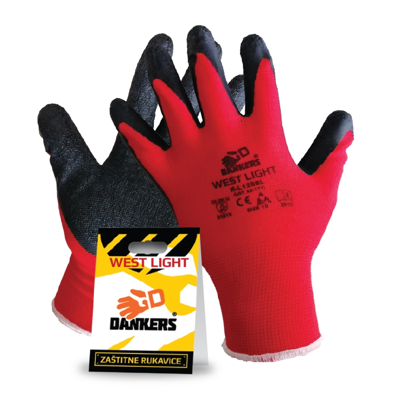 Zaštitne pletene rukavice od poliestra West Light imaju nanos crnog hrapavog lateksa. Poseduju elasticnu manžetnu. Pružaju odličnu preciznost u radu. Posebno se preporučuju kod rukovanja sa lakšim, grubim, suvim predmetima. Rukavice su u maloprodajnom, blister pakovanju. Stara šifra: R-L128BL Deklaracija