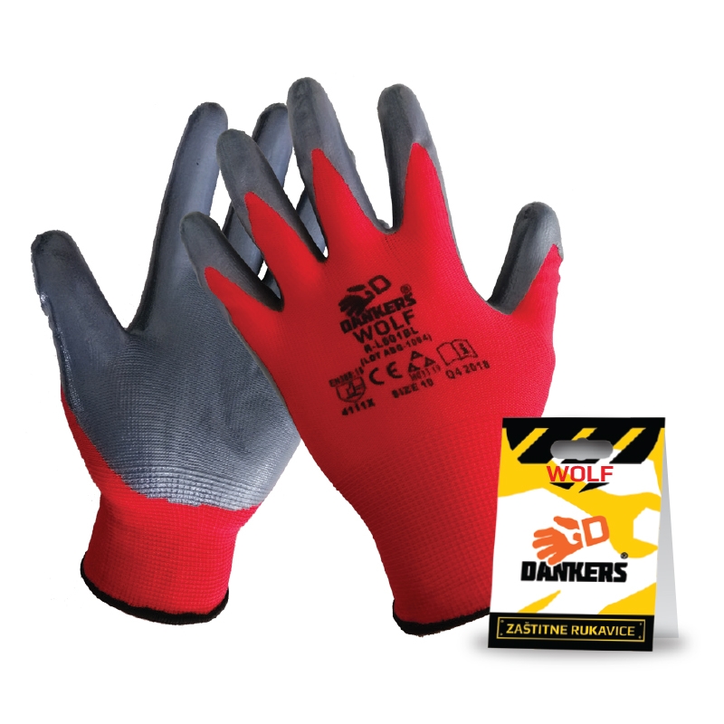 Zaštitne bešavne rukavice Dankers Wolf na dlanu i prstima poseduju glatak sloj nitrila. Pružaju visoku preciznost u radu. Posebno se preporučuju za rad sa klizavim, vlažnim, masnim i nauljenim predmetima. Rukavice su u maloprodajnom pakovanju (sa blisterom). Stara šifra: R-L601BL Deklaracija