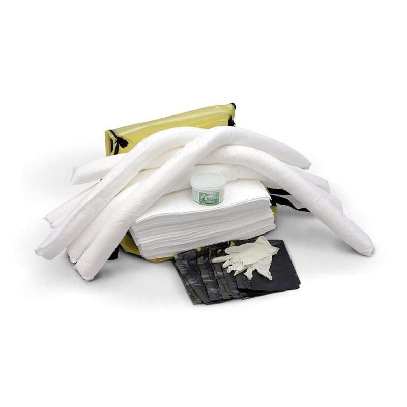 Komplet za upijanje ulja, nafte i derivata spakovan je u praktičnu i izdrživu torbu. Odbija vodu. Komplet sadrži: 50 ploča, 8 zmijica, zaptivni git, 3 PVC kese i par rukavica. Torba služi za čuvanje i odlaganje kompleta kao i njegovo lako prenošenje a u slučaju akcidenta kao privremena vreća za odlaganje ostataka. Apsorpcija kompleta je od 100 do 110 litara, zavisno od viskoziteta prolivene tečnosti. DImenzija torbe je 50 x 50 x 40 cm, a težina 8,1 kg. Stara šifra: SPILL-OR1214 |